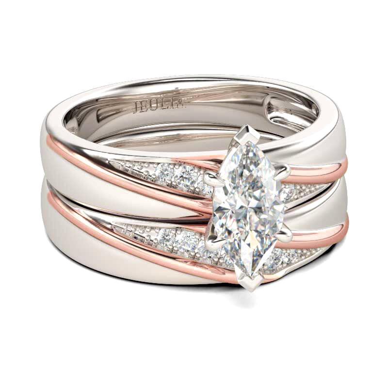 Jeulia Juego De Anillos Diagonal Corte Marquesa En Plata Esterlina