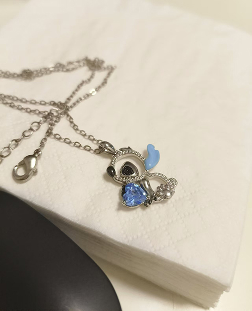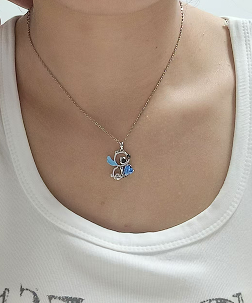 Jeulia Collar Personalizado de Plata de Ley con Diseño de Corazón de Pequeño Monstruo Oreja Azul