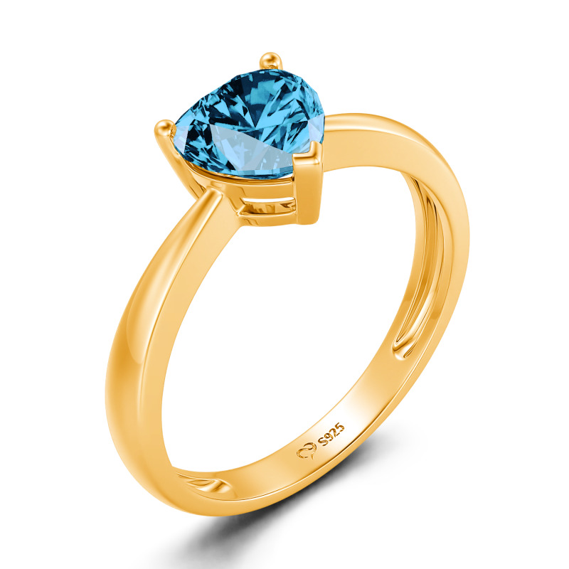 Jeulia Anillo de Compromiso con Corte de Corazón Clásico Montado Sobre Tres Garra de Plata de Ley