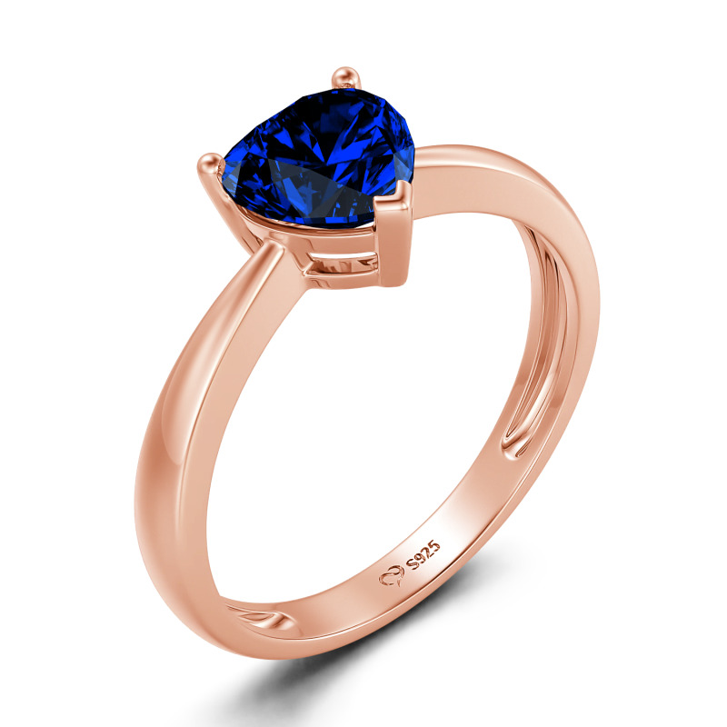 Jeulia Anillo de Compromiso con Corte de Corazón Clásico Montado Sobre Tres Garra de Plata de Ley