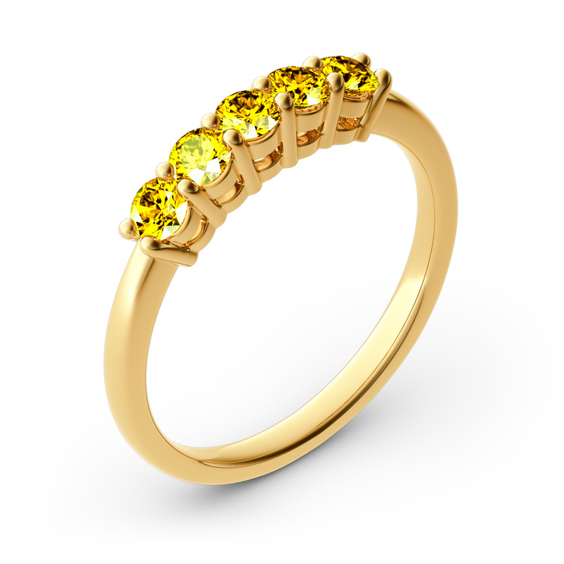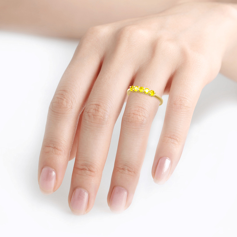 Jeulia Cinco Piedras Redondas Anillo De 10K/14K/18K Oro Blanco