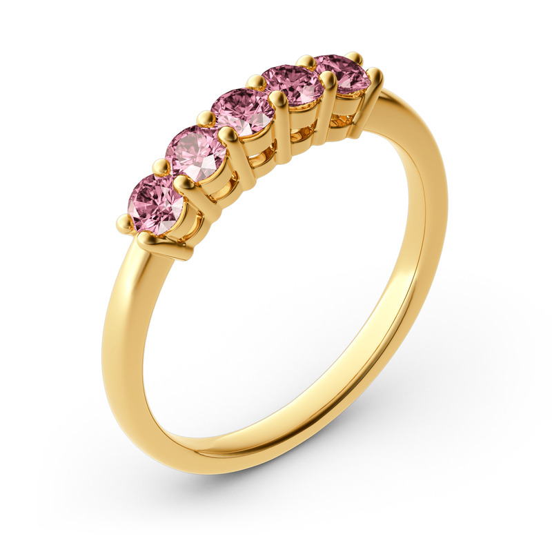 Jeulia Cinco Piedras Redondas Anillo De 10K/14K/18K Oro Blanco
