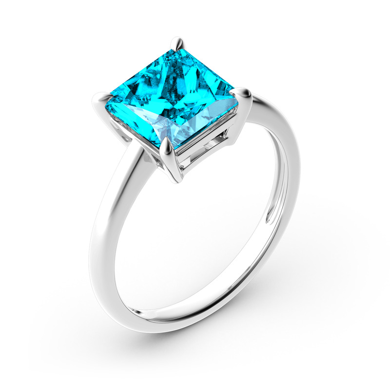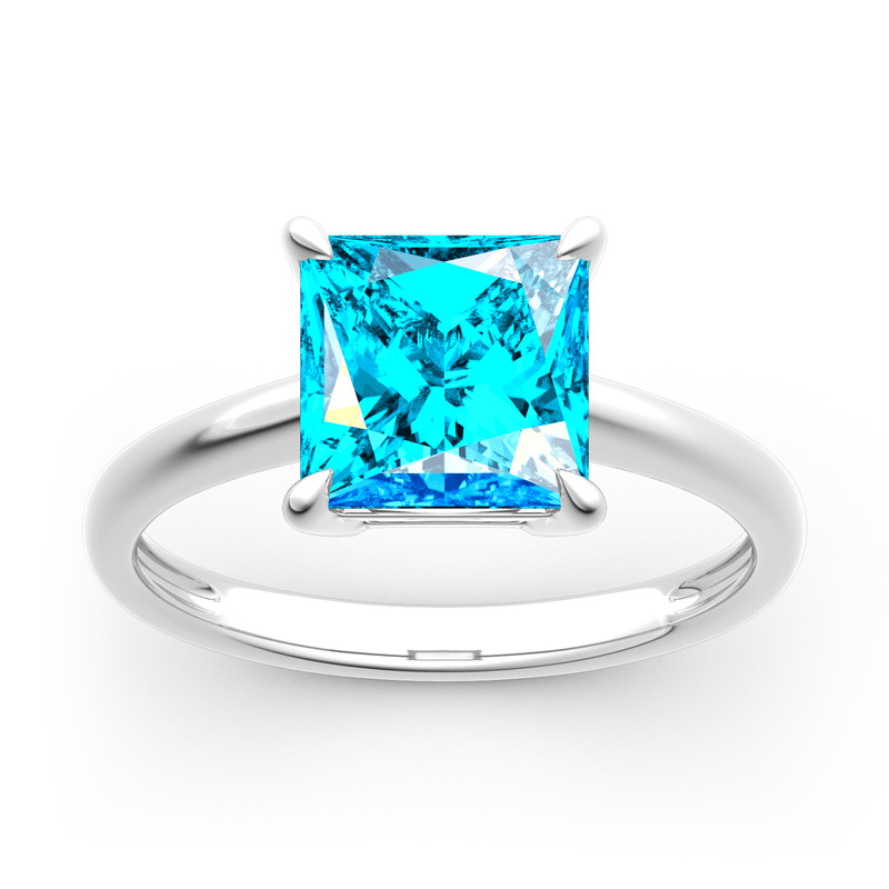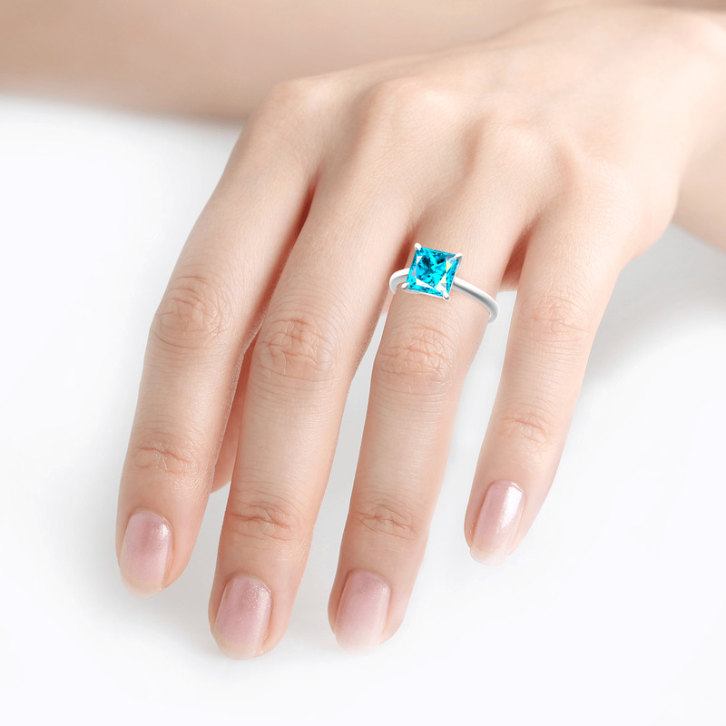 Jeulia Princesa Con Piedra Cuadrada Diseño Solitario Anillo De 10K/14K/18K Oro Blanco