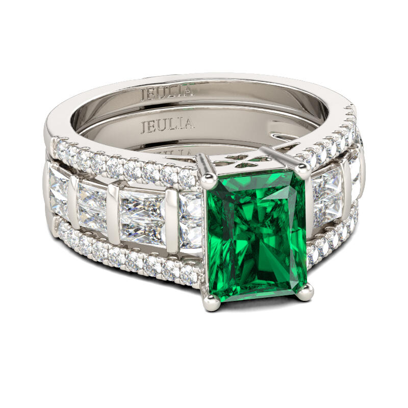 Jeulia Intercambiable De Talla Radiante Set De Anillos De Plata De Ley