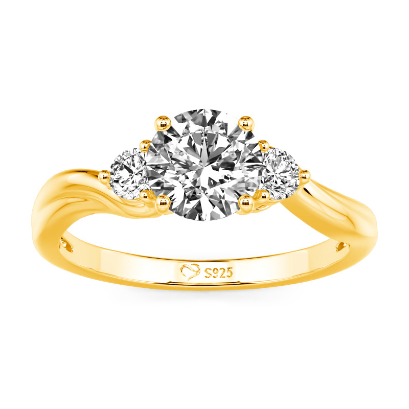 Jeulia Anillo de Compromiso Tres Piedras Redondo en Oro 10K/14K/18K y Platino