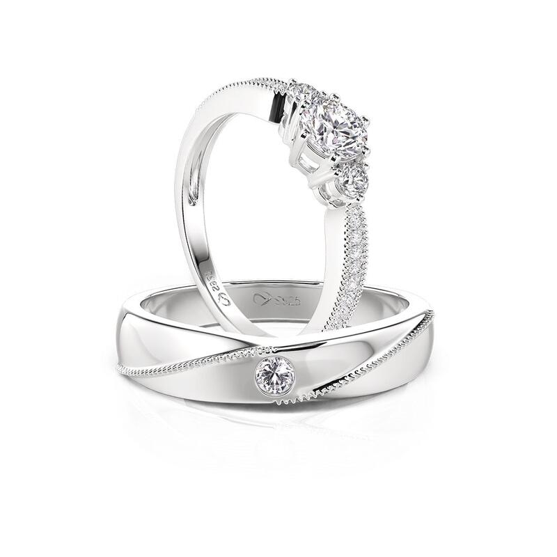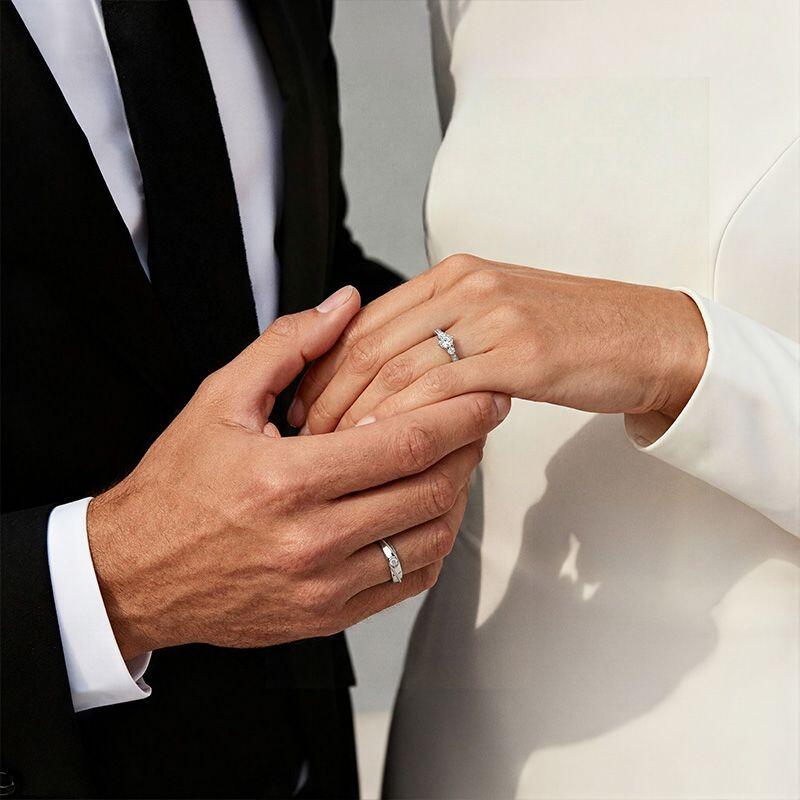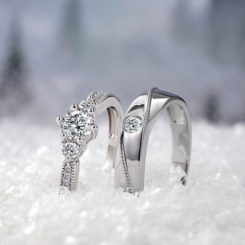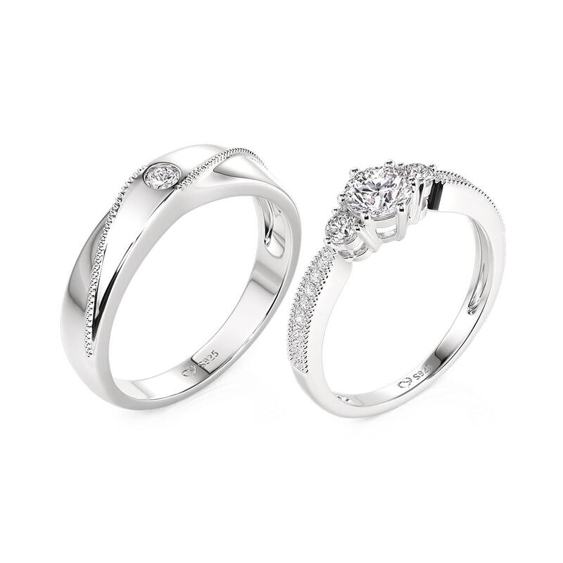 Una silueta compartida en plata: el de ella brilla con un grupo de tres piedras y pavé completo a lo largo de la curva cónica; el de él descansa una piedra solitaria entre un destello delicado en el mismo afilado elegante. Usados juntos, estos anillos de plata de cono invertido Jeulia cuentan una historia con dos voces: alineados en forma, distintos en expresión, unidos en un entendimiento sereno.