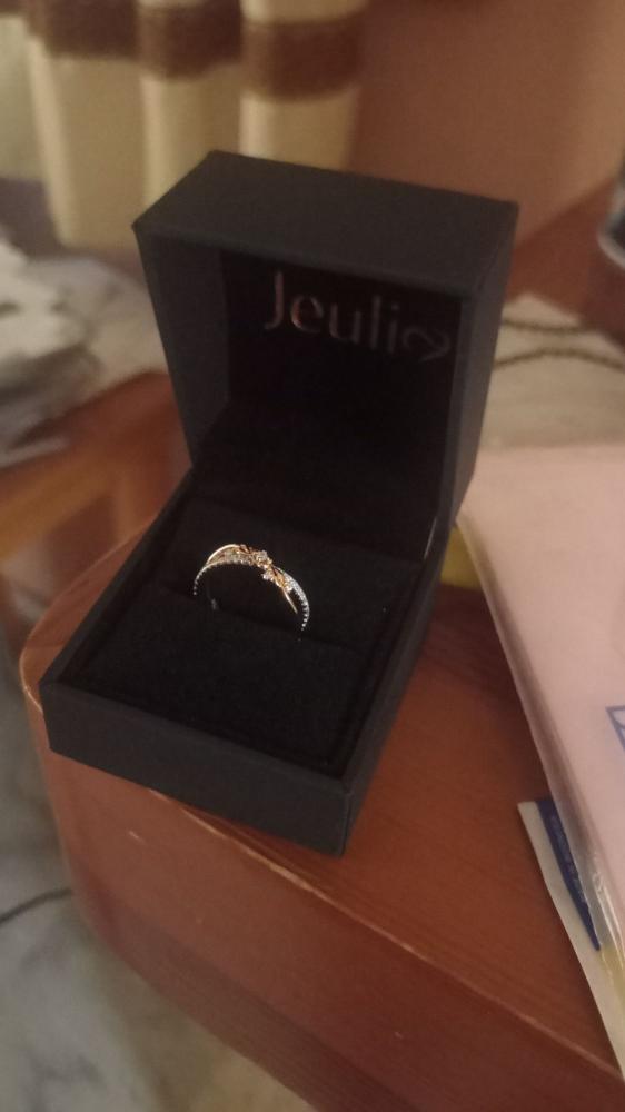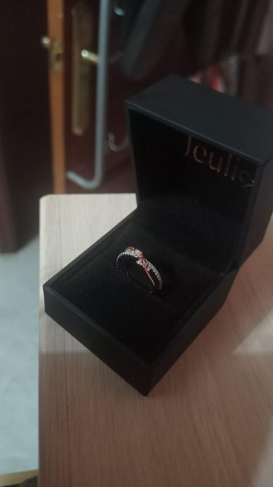 Jeulia Anillo de Flor de Dos Tonos de Oro Rosa con Diseño de Cruz en Plata Esterlina