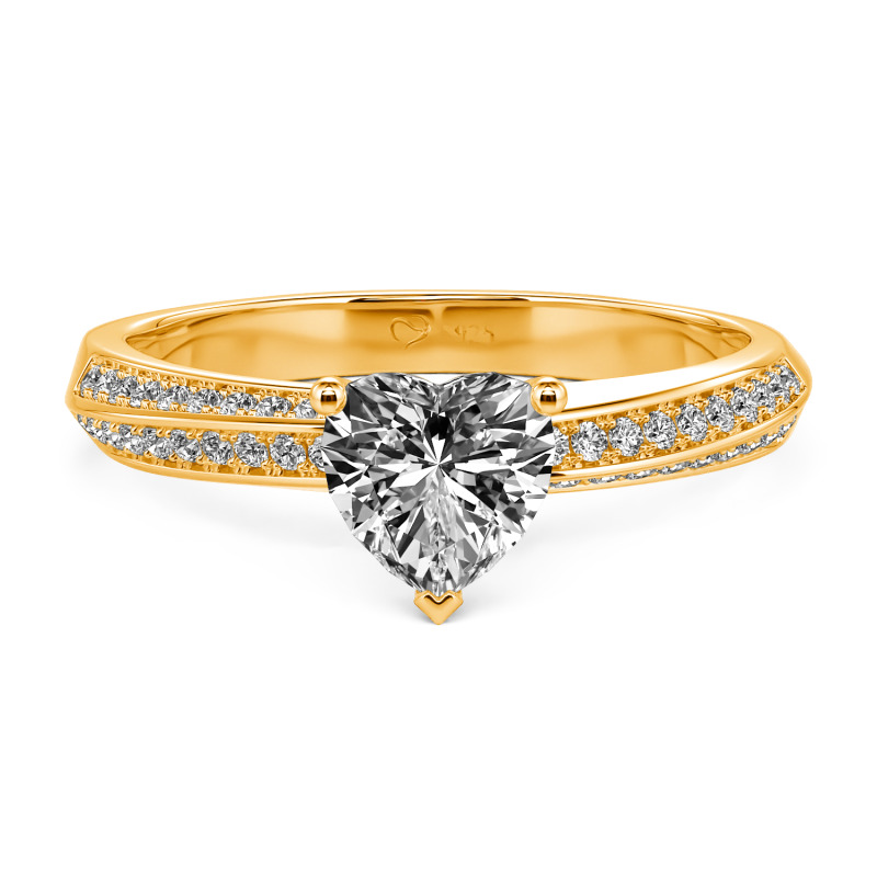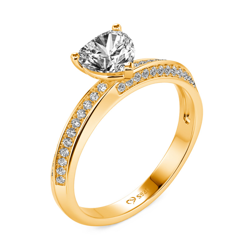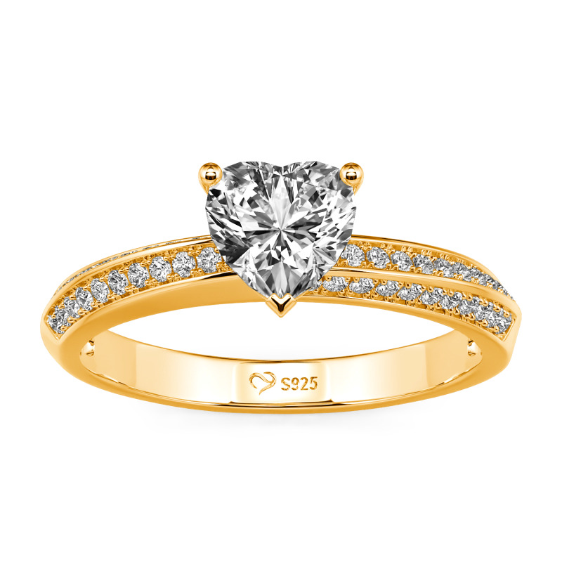 Una gema talla corazón descansa sobre una banda de plata de ley retorcida, flanqueada por cirones pavé que esparcen la luz como polvo de estrellas a lo largo de las curvas. Cada elemento de esta alianza de corazón Jeulia—desde la piedra central y las piedras laterales hasta el metal—se puede adaptar a tus deseos. Personaliza el color de la piedra—azul medianoche para misterio, rosa rubor para ternura—o elige un acabado metálico de dos tonos para contraste. La silueta minimalista asegura que el corazón siga siendo el protagonista, su mensaje claro pero íntimo.