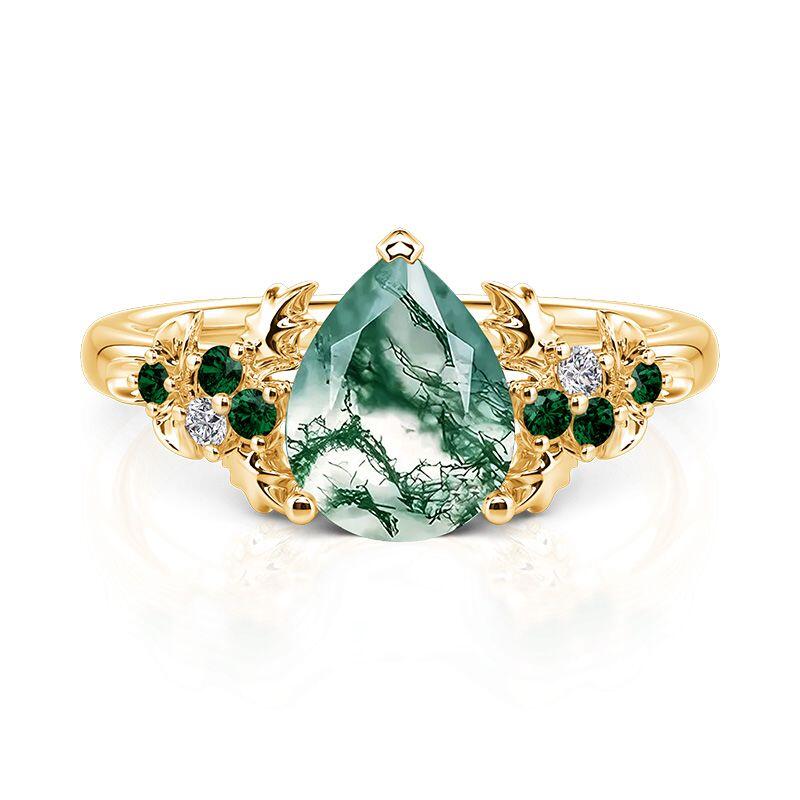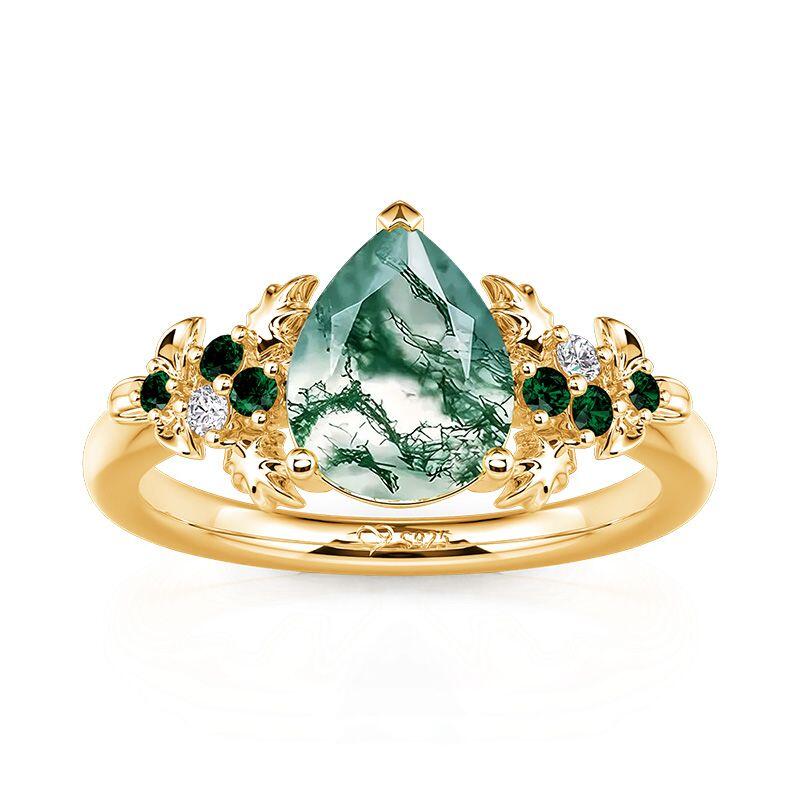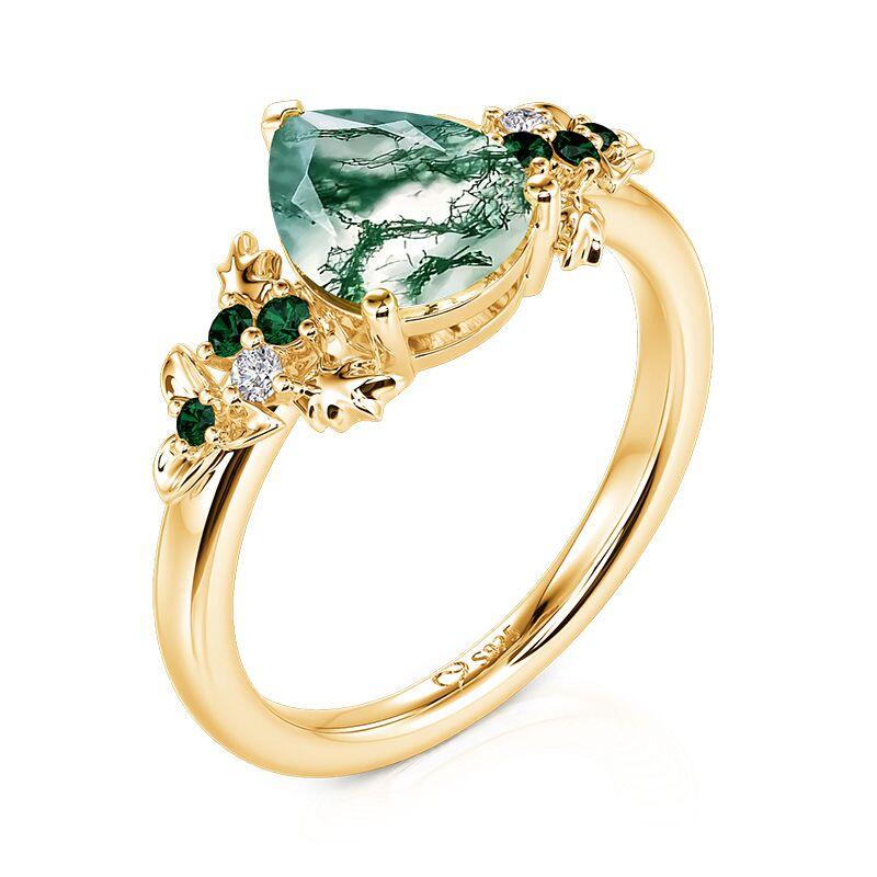 Jeulia Anillo de Compromiso Oro Hoja de Acebo en Forma de Pera Ágata Musgo