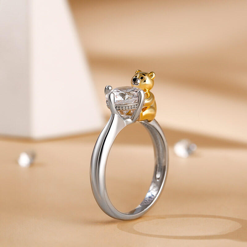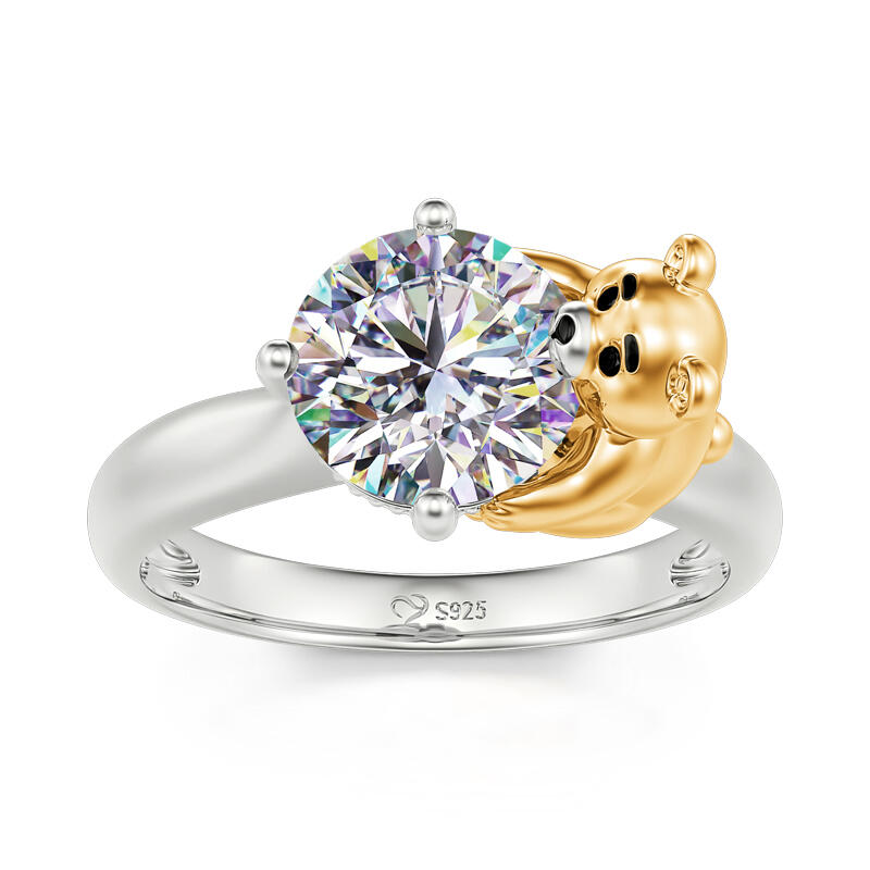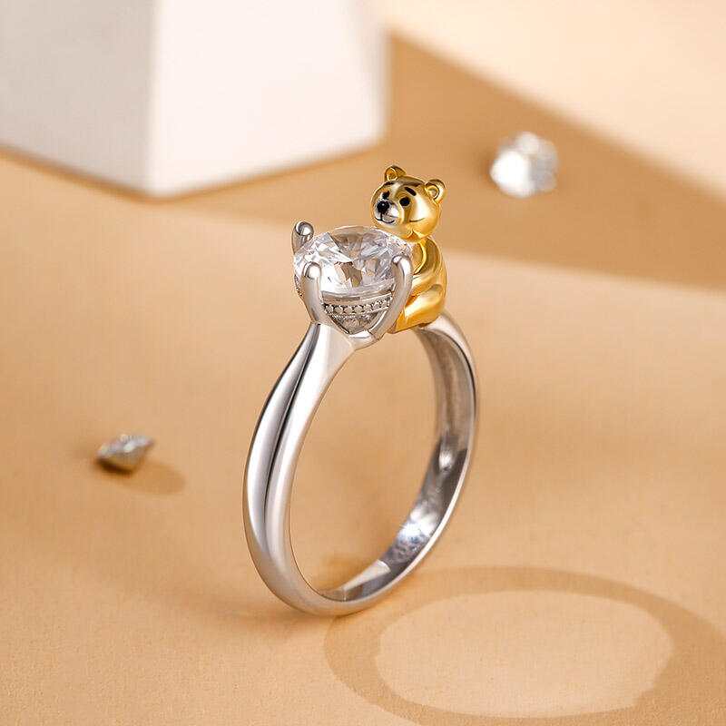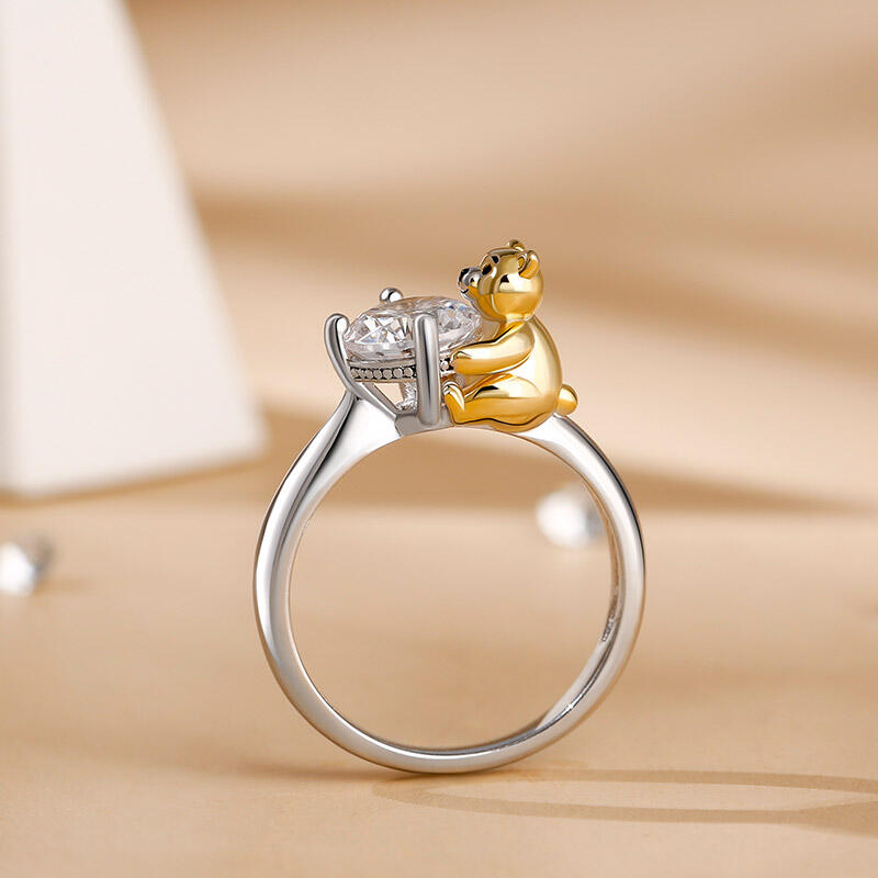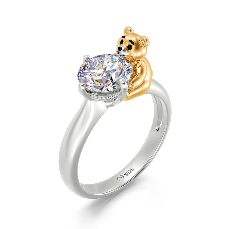 Jeulia Hug Me Anillo con osito de peluche de plata de ley de corte redondo