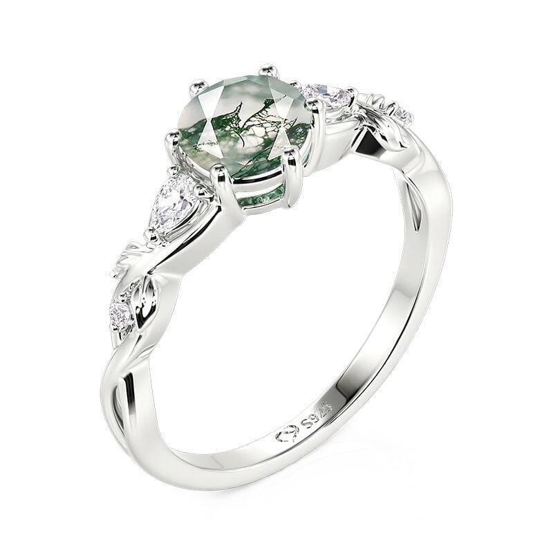 Jeulia Anillo con Ágata Musgo Vid Hoja Retorcido Corte Redondo