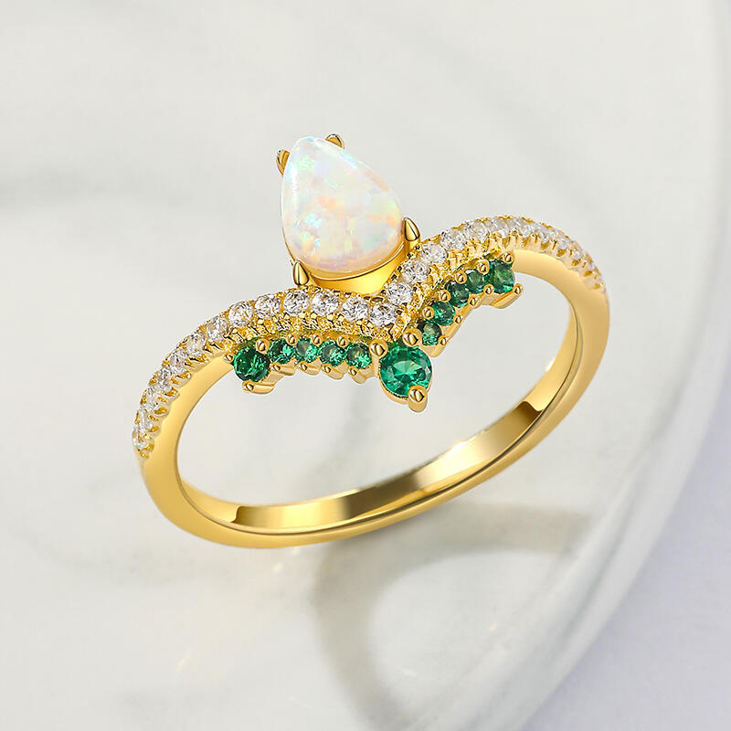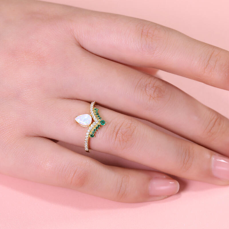 Jeulia Anillo de Compromiso Vintage de Plata de Ley con Ópalo