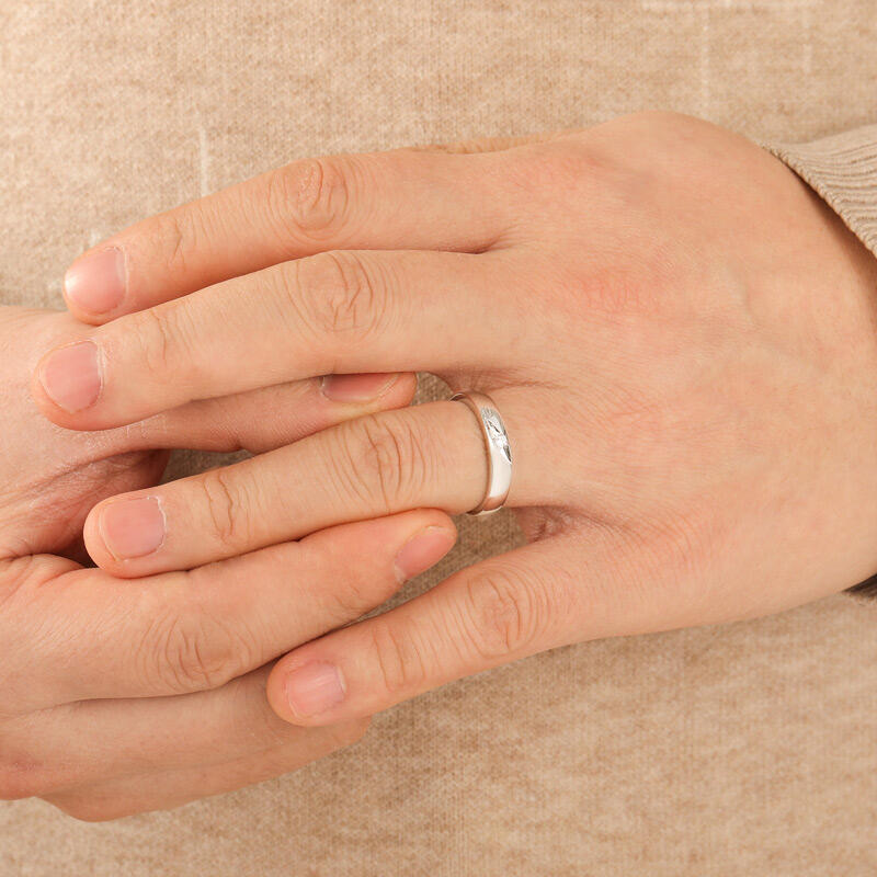 Fabricado en plata sterling, es discreto sin perder textura, y complementa tu temperamento estable e introvertido, acompañándote a través de cada día ordinario y valioso de tu tiempo en pareja.