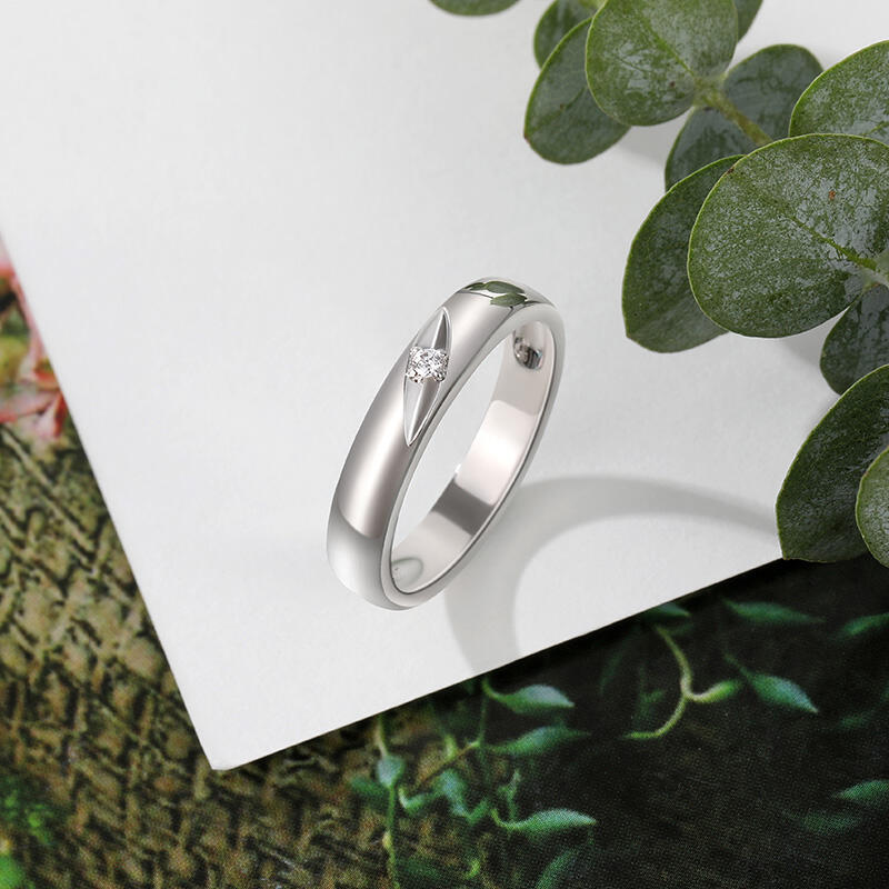 Este sencillo anillo de promesa para hombres también incorpora el elemento de las alas, pero muestra un encanto diferente.