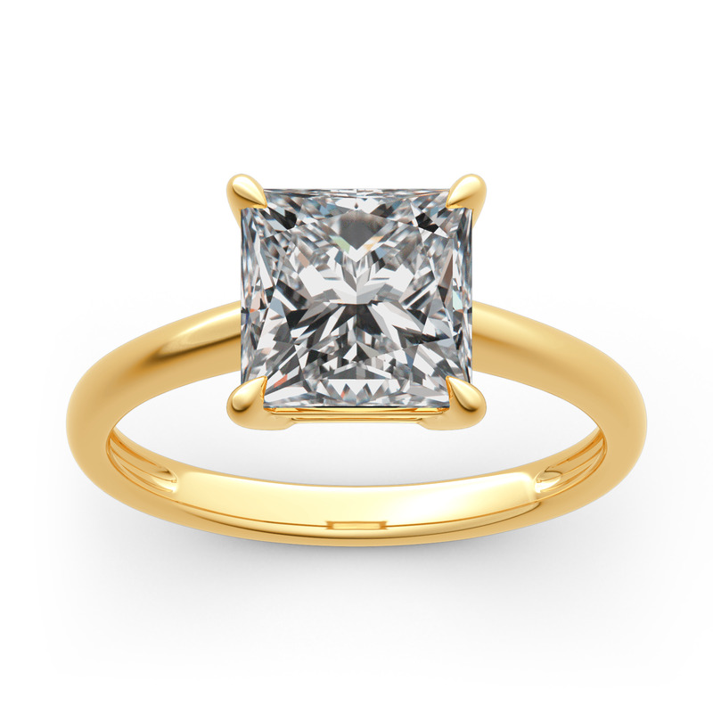 Jeulia Princesa Con Piedra Cuadrada Diseño Solitario Anillo De 10K/14K/18K Oro Blanco