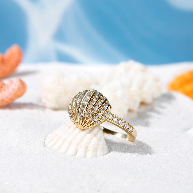 Jeulia Concha De Mar De Cono Oro Anillo De Plata Esterlina