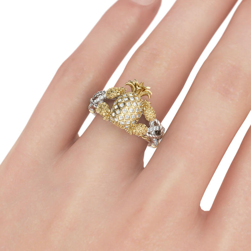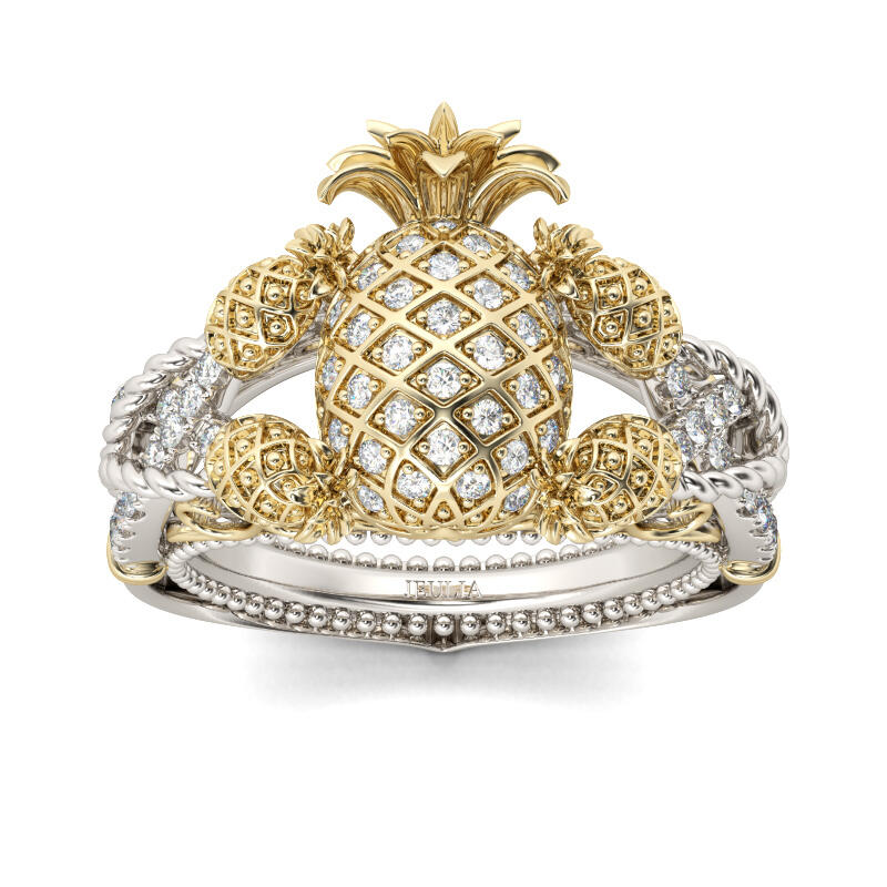 Jeulia Anillo Entrelazado Con Dos Tonos De Pi?a En Plata De Ley